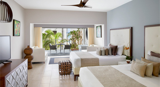 Suites are located in the Blue Mountain or Bamboo building, and feature a view of the ocean. Additional amenities include direct access to a private pool from the terrace.