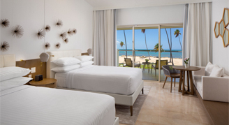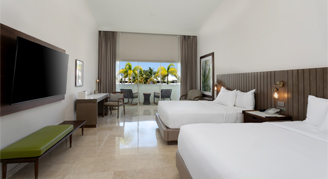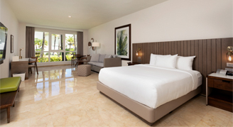 Luxurious and spacious. Blissful luxury with marble, spacious baths and clean linen await your stay at the Hyatt Regency Grand Reserve. Rooms feature 49" smart televisions, premium channels, in-room coffee and tea, mini-refrigerator, make-up mirror, and safe. Higher category rooms offer a soaking tub and rain shower, separate lounge area, and terrace or balconies with views of the sea or lush tropical gardens.