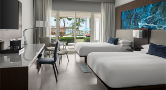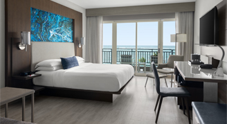 Rooms feature premium bedding and blackout drapes, Bath and Body Works bathroom amenities, robe, laptop compatible safe and TV with premium channels.