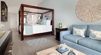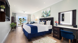 Located on the fourth floor in the Harmony adults-only wing with expansive views of the Atlantic Ocean, the Maria Islands, pool area and gardens. Rooms have one king bed, robes and slippers, evening turndown service, a balcony, iron and board, safe, flat-screen TV, radio alarm, a mini-fridge stocked with water, soft drinks and local beer; and coffee/tea service.