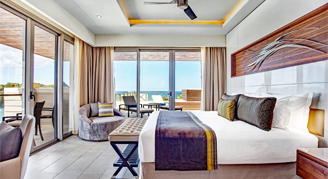 Suites feature a resort or partial ocean view. Additional amenities include a separate living area.