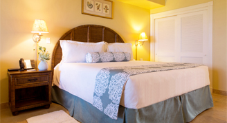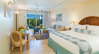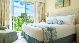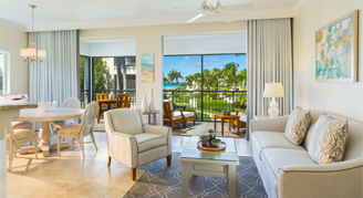 Suites feature an ocean view with a private screened balcony, a living/dining room that has a queen-size pull-out sofa bed and a full kitchen.