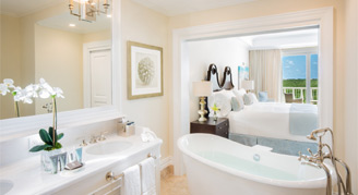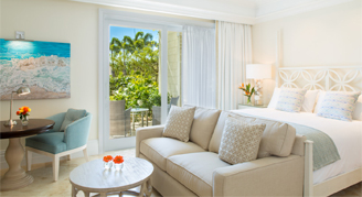 Rooms feature a view of the gardens. Additional amenities include two full bedrooms, a balcony, a kitchenette, mini-fridge and a wet bar.
