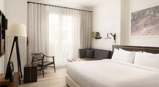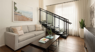 Warm natural light pours from the oversized windows onto hardwood floors. Journey from the beckoning bed, to the sofa. This artful urban enclave is all yours. These suites feature a separate living space and captivating views of Cherry Creek North and downtown Denver.