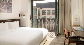 Let in the light with a Corner Room at Halcyon, the positioning of this room gives you more windows, letting in that 300-something days of sunshine Denver is famous for. Featuring one king-size bed and a larger couch.