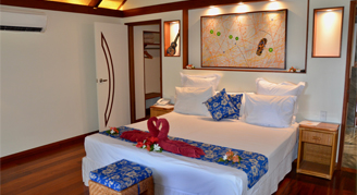 Suites are located closer to the lagoon in the tropical gardens and coconut trees. Their ideal placement provides for maximum privacy and comfort during your stay. Additional amenities include a separate bedroom, and a TV. Rollaway beds are available.