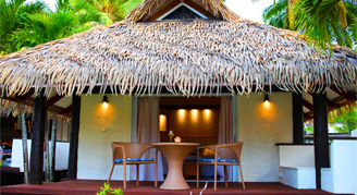 Studios are located closer to the lagoon in the tropical gardens and coconut trees, and feature a lagoon view.