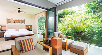 Suites feature a tropical forest view. Additional amenities include a separate living space and work area and a private plunge pool.