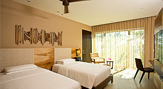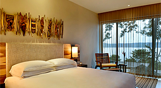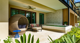 Rooms, suites and villas offer a modern design blended with woven textiles, solid woods, and carved artifacts that highlight the rich Costa Rican scenery. Bathrooms feature a walk-in rain shower that opens to the balcony and deluxe amenities. A highlight of Costa Rica is the emphasis that is placed on protecting and preserving the environment. Rules are strict, and trees and other foliage may not be trimmed, cut or removed without government authorization. Therefore, at certain times of the year, growth may be thick, resulting in obstructed views from hotel guestrooms.