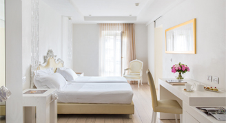 The Superior room offers you the choice between a king-size bed or twin beds, enveloped in a chic atmosphere thanks to noble materials such as marble and velvet. Every detail of decoration is carefully chosen to create an elegant atmosphere.