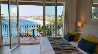 Let yourself be lulled by the calm flowing through these rooms, culminating in breathtaking views of the sea in Nice! There are 38 rooms in total (including one suite with a panoramic view and terrace), offering a harmonious and refined décor, where you can relax and admire the Mediterranean without ever getting tired of it.