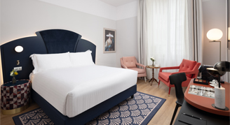 Immerse yourself in the bold and colorful atmosphere of the Anglo American Hotel Florence rooms. Enjoy your stay amidst designer furnishings and stylish elements that reinterpret the revolutionary arts of the early 1900s, with a mix of unusual and intriguing details. Experience a world of eclectic contrasts in the heart of Florence.