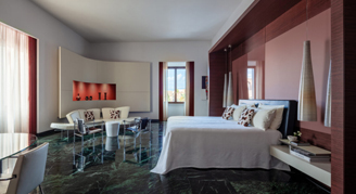 Designed by renowned architect Marco Piva, this stunning suite tells the story of Rome with an artful blend of modern style and classic elegance. Gaze out at views of the Piazza della Repubblica and Diocletian baths from multiple vantage points within the suite.