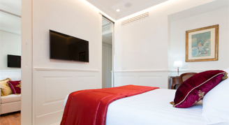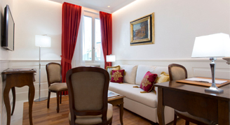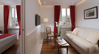 Outfitted with colored and elegant draperies and classic furnishing, Junior Suites include a sofa bed and feature views of St. Isidore's college garden with modern touches.