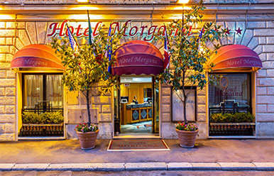 Hotel Morgana offers guests a warm, inviting urban retreat with the added convenience of being within steps to the Termini Station and other public transportation, providing easy access to major sights including the Roman Forum, Colosseum, Trevi Fountain and the Spanish steps.