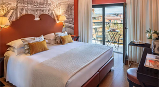 Slightly larger than the Superior Room, the Deluxe Room with Balcony includes standard amenities. Features include a broad headboard against walls decorated with drawings of famous Roman sights, such as the Coliseum and St. Peter's Basilica. This category is available on select limited-time offers.