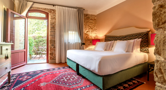 Rooms offer an authentic Tuscan experience. Rooms are located in the Paggeria Medicea hotel building next to the villa, and feature a door that opens out to the Tuscan landscape.