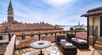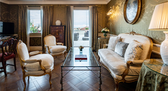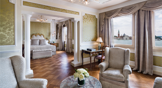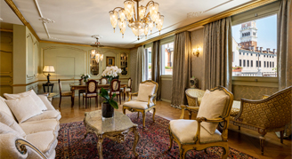 Suites offer beautiful, panoramic views of the Venice Lagoon and San Marco Basin.