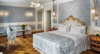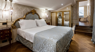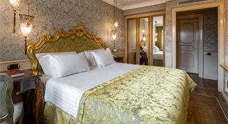 Richly decorated with vintage furnishings that recall the classic Venetian style, suites offer a panoramic view of San Marco and the Venice Lagoon.