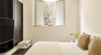 • Designed by internationally celebrated architects Foster + Partners, the modern and stylish rooms feature floor-to-ceiling windows offering views of the city or river. Each of the floor layouts are designed around a central pyramid spanning throughout all 10 floors of the hotel, creating spacious and aesthetically pleasing corridors clad in Nero Marquina marble. All rooms are non-smoking and have individually controlled air conditioning and heating. Additional features include white leather walls, Nespresso machine, ambient mood lighting, media hub, desk with built-in adapters, laptop size safe with power and complimentary high speed Wi-Fi.