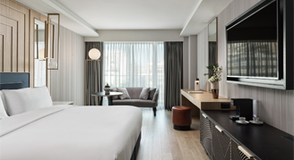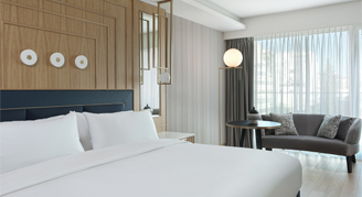 Exquisite comfort awaits you in the newly built modern rooms and suites, equipped with the latest amenities, impressive marble bathrooms and spacious living and working areas.