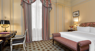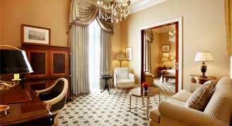 • The Guest Rooms feature meticulous attention to detail marrying charming old-world elegance with state-of-the-art facilities. Warm color themes of soft creams and taupes make their way into the window treatments and plush carpeting. The indulgent wall-to-wall marble bathroom features a vanity counter, separate bathtub, and shower. Thoughtfully designed with fog-resistant and lighted magnifying mirrors, every bathroom offers pure cotton bathrobes and slippers, salon style hairdryers, weight scales, and pampering Gilchrist & Soames bathroom amenities. An ingenious telephone with two IDD lines offers high-speed internet access. Individual bedside reading lights, flat screen plasma television with cable, and a fully stocked refreshment center.