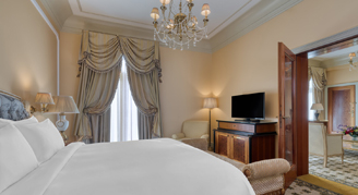 Most suites feature a view of the hotel’s courtyard. Suites on floor 6 feature a view of Lycabettus Hill. Additional amenities include elegant chandeliers, original artwork, antique furnishings provided by Christie's and Sotheby's and personalized butler service. A rollaway bed is included for the third guest. This room category is only available during select months of the year.