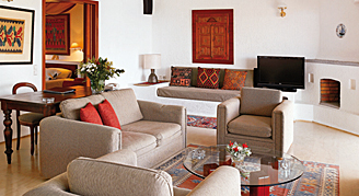 Located in the main building. The living room features a pull-out sofa and separated bedroom. Suites also include a marbled bathroom with bathrobes and slippers. Additionally these suites offer a balcony or terrace with a sea view. This room type offers more interior space than the One-Bedroom Sea-View Suite.