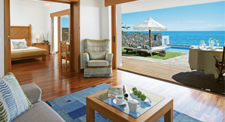 These spacious split level rooms offer luxurious marble bathrooms accompanied by bathrobes, slippers and other amenities. The lower room opens directly onto the beachfront patio and private pool, from which there is beach access.