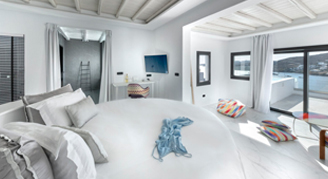 Rooms are decorated in a traditional Mykonos style and are situated to feature beauty of the island.