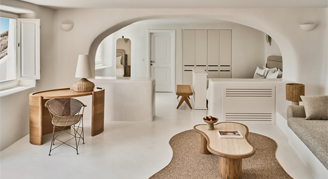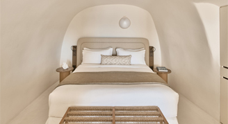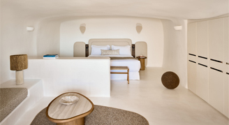 Suites feature panoramic views of the Caldera, a living room and a private terrace with an outdoor jacuzzi.