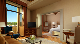 Junior Suites feature a separate seating area with a Sofa, Renaissance style furnishings and views of the city. A rollaway bed is included for the third guest.