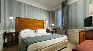 Larger than the Deluxe Room and located in a renovated annex building, Executive rooms provide a unique personality that combine modern comforts and opulence with traditional Roman hospitality.