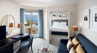 Relax in this comfortable Superior Room featuring Courtyard or Rose Garden views. The Riviera-style décor features calming shades of blue and ochre for a tranquil atmosphere. Start your day with coffee from the espresso machine and unwind with a program on the HDTV. The elegant bathroom features a bathtub. Additional amenities include complimentary Wi-Fi, a mini-bar, laptop safe, iron with board, and USB ports.