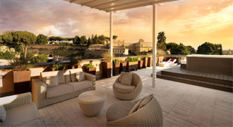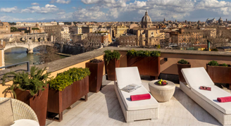 These luxurious suites offer a terrace with a hot tub, and boast spectacular views over the Vatican and St. Peter's dome. Features an intimate bedroom and stylish lounge.