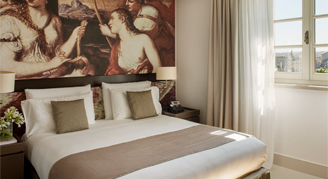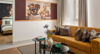 The very definition of Italian elegance. Gaze out over the rooftops of the Eternal City from your stylish River Suite with a comfortable bedroom and modern lounge.