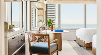 With understated elegance, large windows framing the city or sea and spacious layouts, each of the 455 guests’ rooms offer panoramic views of Barcelona’s city skyline as well as the Mediterranean Sea.
