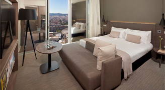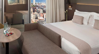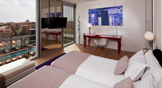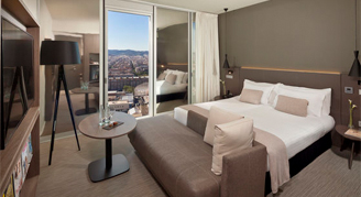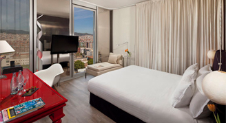 The Level Grand Premium City-View Rooms are located on the upper floors of the hotel and feature views of Barcelona.