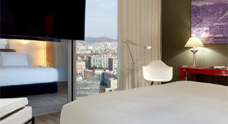 Residing in the iconic skyscraper designed by Dominique Perrault, the Melia Barcelona Sky is located in a very fashion forward and high tech neighborhood.