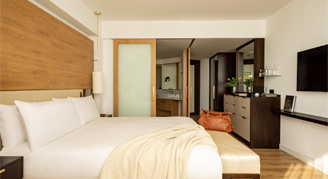 Take a break in this distinguished suite overlooking the city or the mountains. This room features a bedroom with a king-size bed, a large separate living room, a bathroom with bathtub, and toilet. Located on floors 1, 2, 14, and 15, this room includes unlimited access to our private lounge and exclusive benefits.