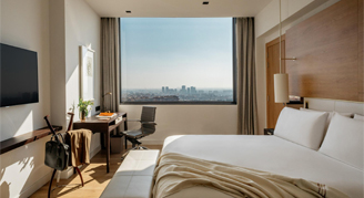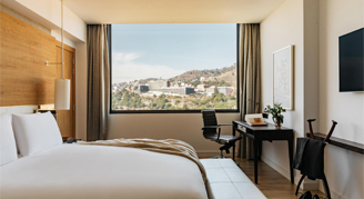 Enjoy a unique panoramic view of the mountains in this space located on floors 10 through 15. It features a bedroom with king-size bed or two queen beds, work desk, and bathroom with walk-in shower. Exclusive access to our private Lounge and other personalized services included