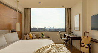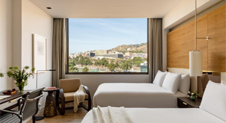 Enjoy spectacular views of Barcelona thanks to its privileged location on floors 10 through 15 of the hotel. It features a king-size bed or two queen beds, bathroom with walk-in shower and a desk. Includes exclusive access to our private lounge along with other unique experiences.