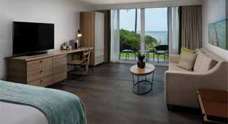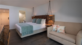Enjoy the shimmering ocean vistas from this cozy yet sophisticated studio suite that features premium bedding and a queen-size sofa bed, in addition to a coastal chic living area.