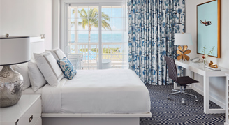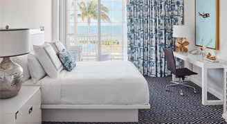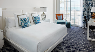 An Oasis of contemporary glamour – a crisp palette of blue and white that connects you to the sea, playful prints, modern furniture, contemporary art, and luxury bathrooms welcome every guest. Indoor/outdoor living at its best, each room features floor-to-ceiling glass doors and roomy private terraces to take in ocean views. The terraces act as outdoor living rooms with spaces for lounging, dining, reading, stargazing, even napping—it's up to you.