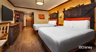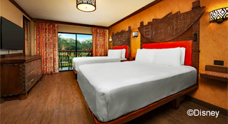 Step into the heart of Africa at this magnificent Resort hotel. Inspired by the traditional African kraal, the horseshoe-curved design provides spectacular views of four lush savannas that over 200 hoofed animals and birds call home. Delight in dazzling pool areas, exciting animal programs and one of the largest collections of African art in the United States as you experience your own African safari adventure with a touch of Disney magic.