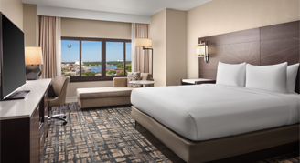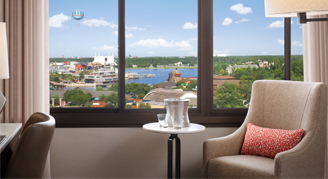 These deluxe guest rooms are newly renovated and feature a view of Disney Springs®.