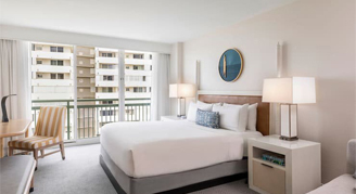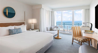 Discover your island hideaway in this serene retreat, featuring a king bed and contemporary coastal décor. Step onto your private balcony for a front-row seat to Singer Island's vibrant rhythms, while natural light and sea-inspired accents create a calming escape. Unwind with plush bedding, a spacious workspace, and modern amenities, ideal for both relaxation and productivity after a sun-soaked day on the shore.