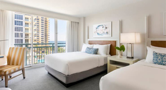 Experience the true meaning of coastal comfort in an oceanfront room designed for sharing unforgettable moments. Enjoy sweeping beach views from your private balcony, with two grand queen beds offering space to stretch out in refined style. Let the soundtrack of the waves and the crisp, airy ambiance carry you from sunrise to starlit evenings, as you create memories in the heart of Singer Island.