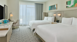 Rooms feature city views from a high floor with two queen beds, artist-conceived interiors as well as a unique display from a local Sarasota artist. Additional amenities include a sketchbook, coloring pencils and a ukulele.