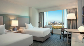 Find comfort and style with this charming space offering two double beds, striking Tampa International Airport runway views, oversize windows with abundant natural light, a mini-fridge and a bathroom with stylish fixtures and a bathtub.